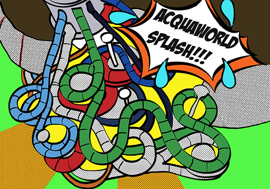 Graphic work for the interior of the Acquapark 'Acquaworld', Concorezzo. Bruno+Partners studio, Milano.